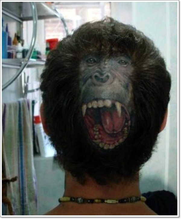 头部非常逼真的原始咆哮猩猩脸纹身图案