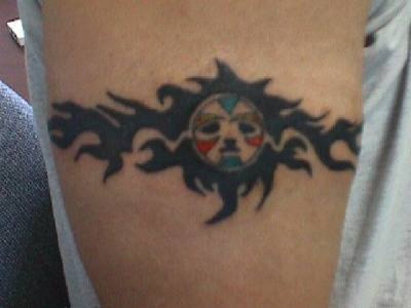 部落手镯和彩色悲伤的脸纹身图案