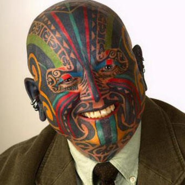 脸部丰富多彩的纹身图案