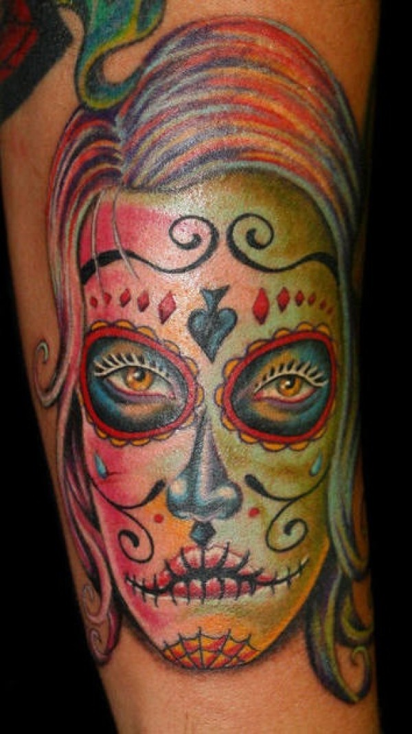 糖果色骷髅脸纹身图案
