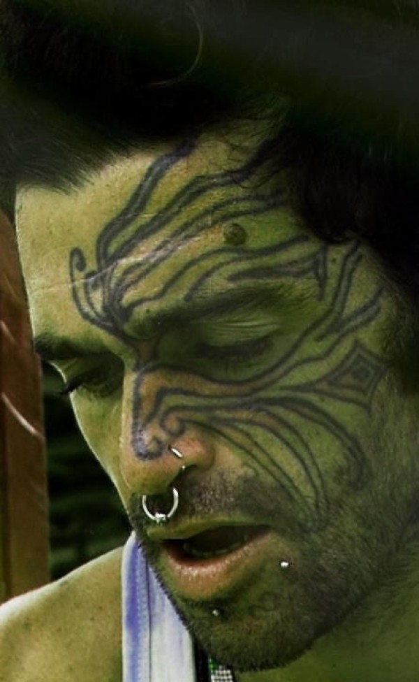 男性脸部的部落纹身图案