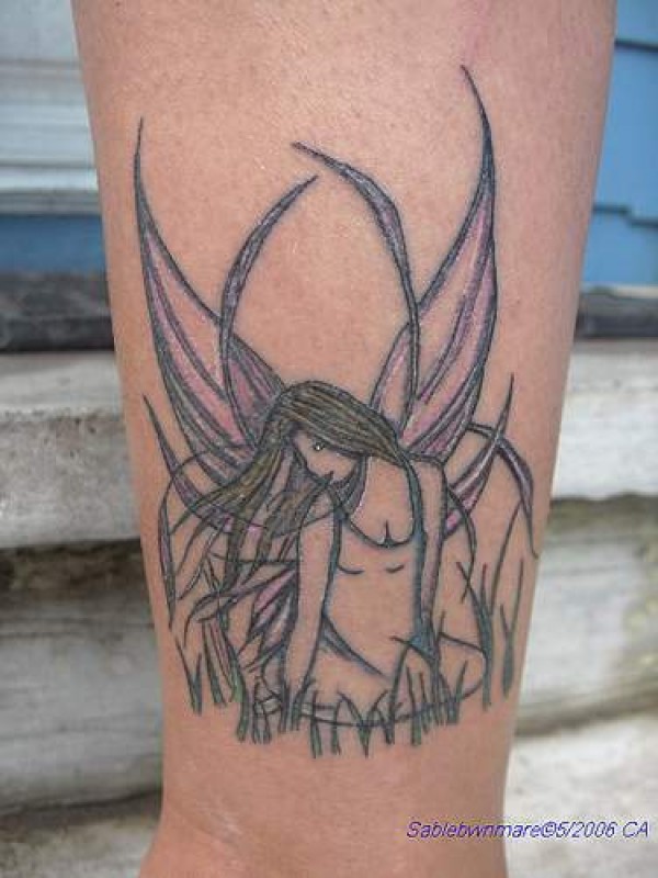 简单的草地和精灵纹身图案