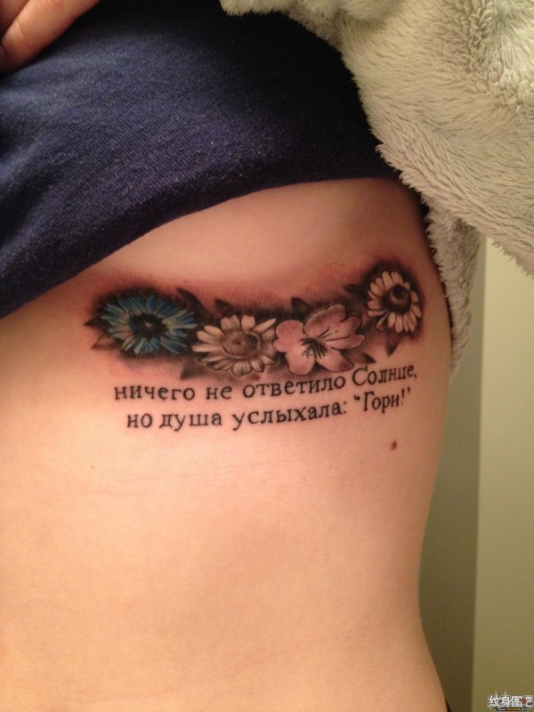 乳房下面藏着4朵小花纹身