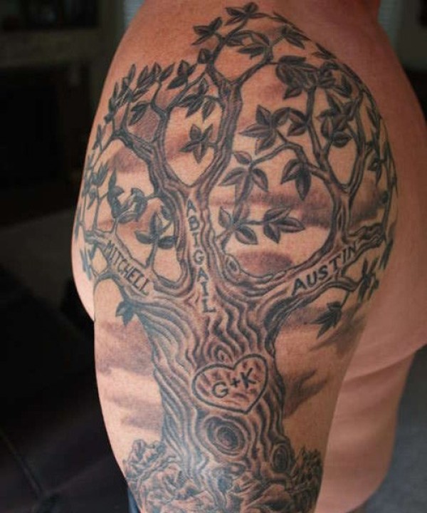 男士大臂族谱树纹身图案