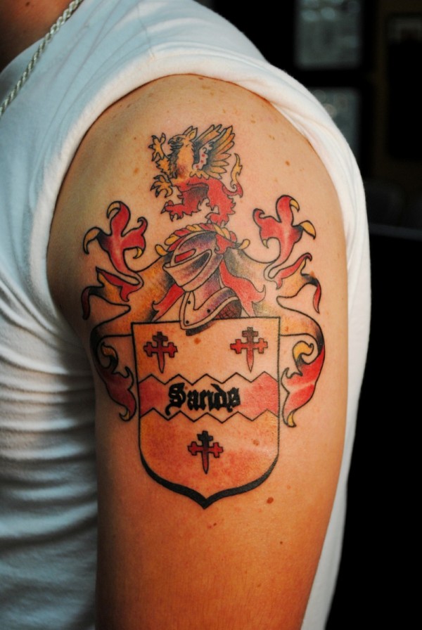 大臂骑士盾牌家族徽章纹身图案