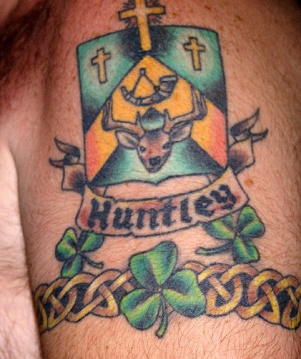 Huntley家族彩色徽章纹身图案