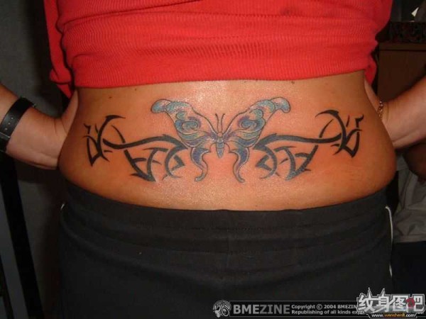 分享一款腰部时尚性感的蝶恋花纹身图案_腰部纹身图案大全_纹身图吧