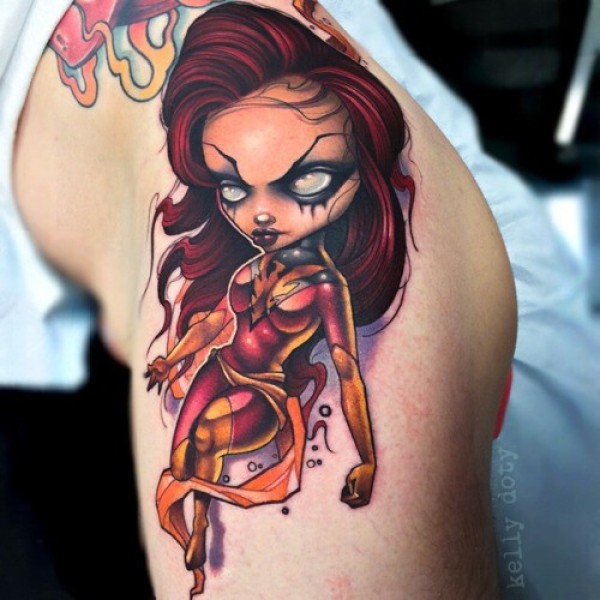 new school大腿恶魔女纹身图案