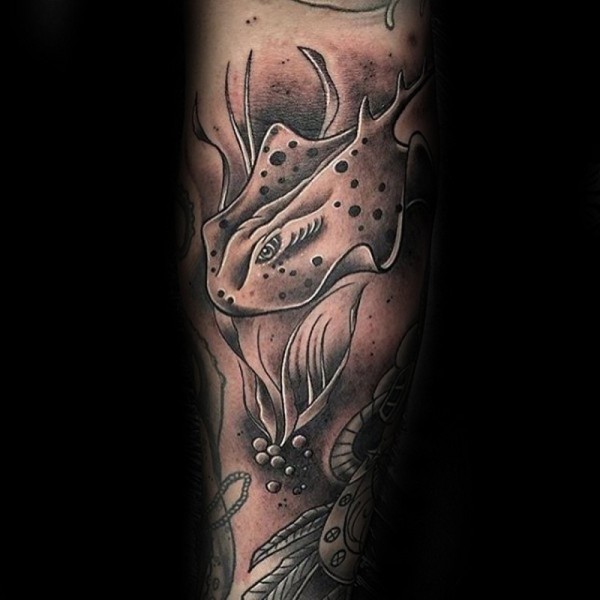 黑灰小臂海底世界和鳐鱼纹身图案