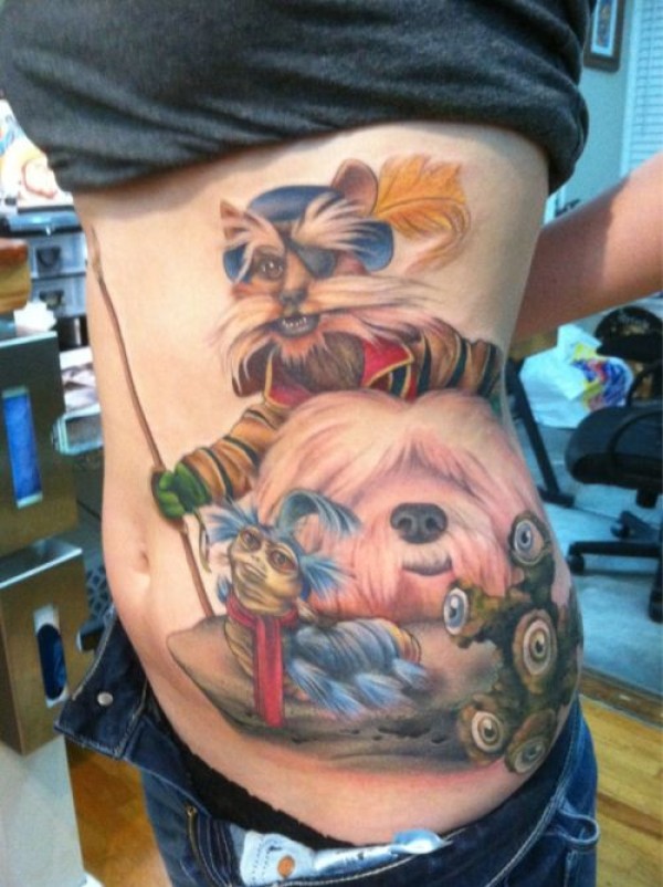女生侧肋有趣的各种幻想动物和怪物纹身图案