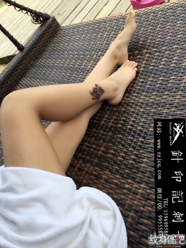 美女腿部纹身--福建三明针印记纹身胡宇作品