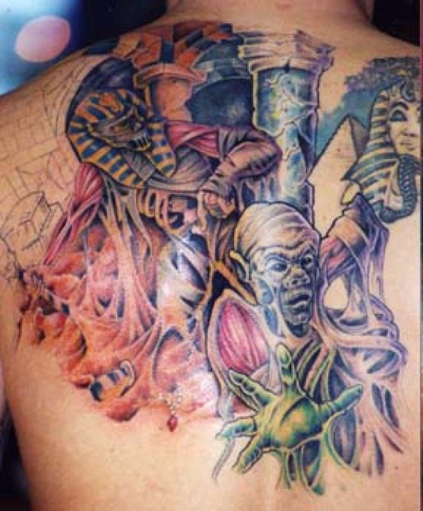 男性背部木乃伊彩色纹身图案