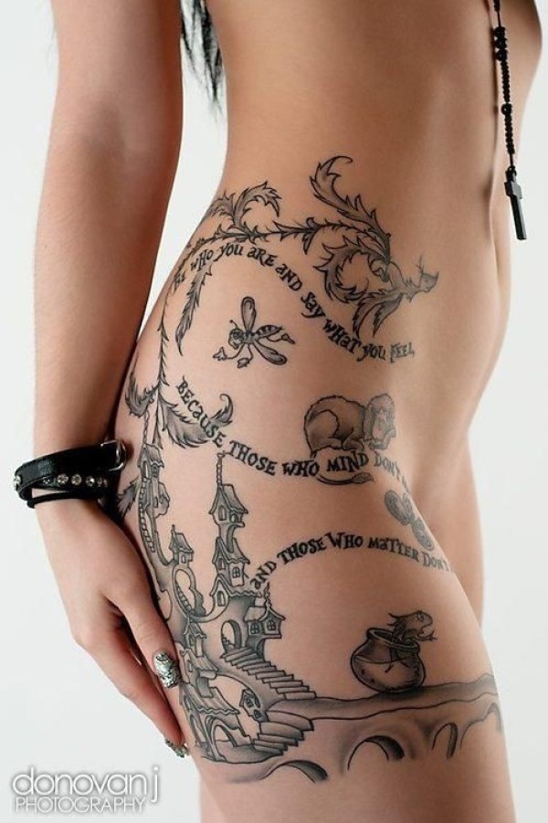 性感美女大腿动物和字母纹身图案