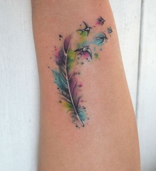 水彩羽毛鸟儿纹身图案
