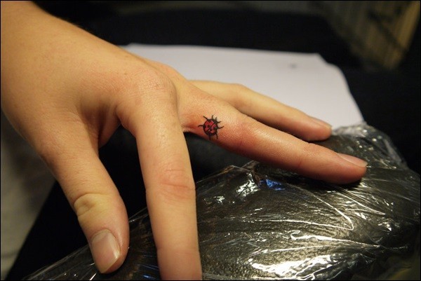 手指内侧彩绘小瓢虫纹身图案