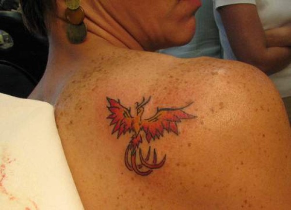 肩部简单的火凤凰纹身图案