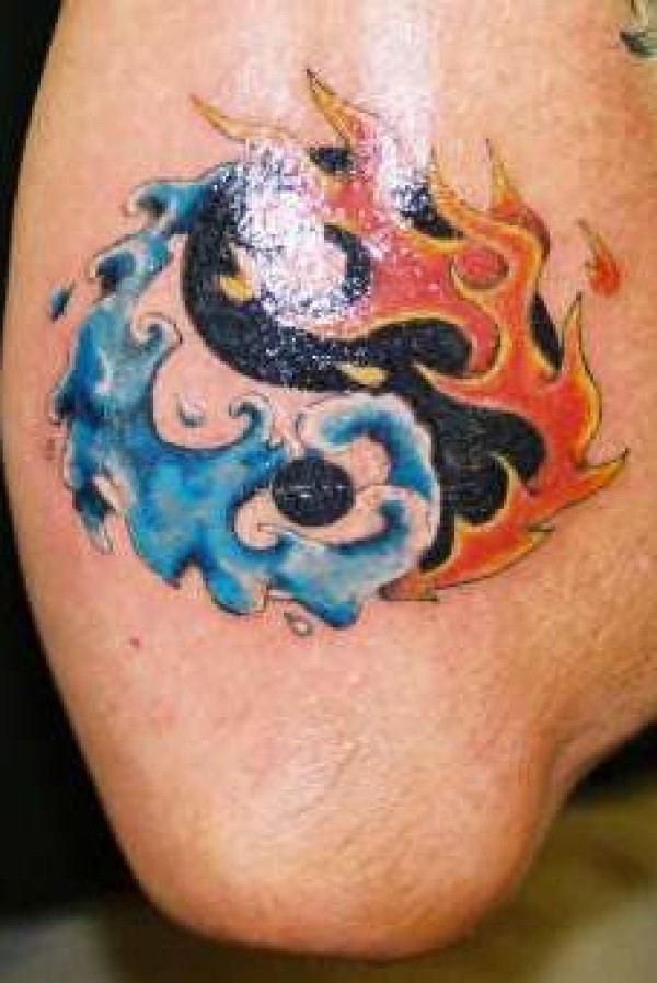 水与火元素阴阳八卦纹身图案