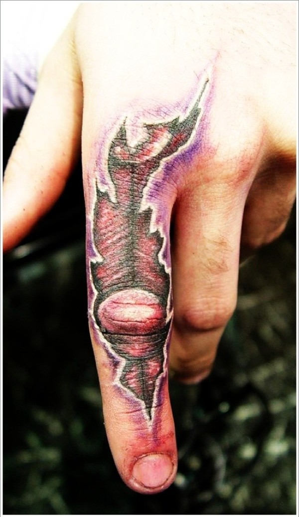 手指上立体的肌肉撕裂个性纹身图案