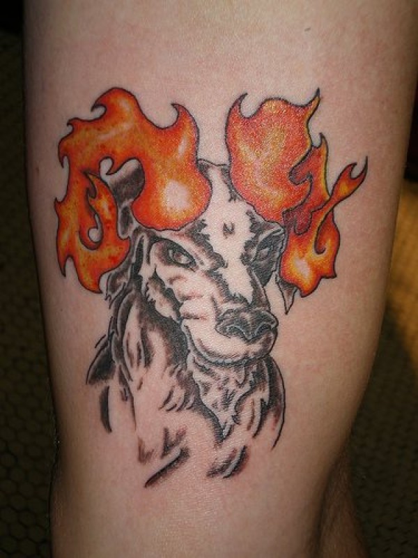 山羊和火焰羊角纹身图案
