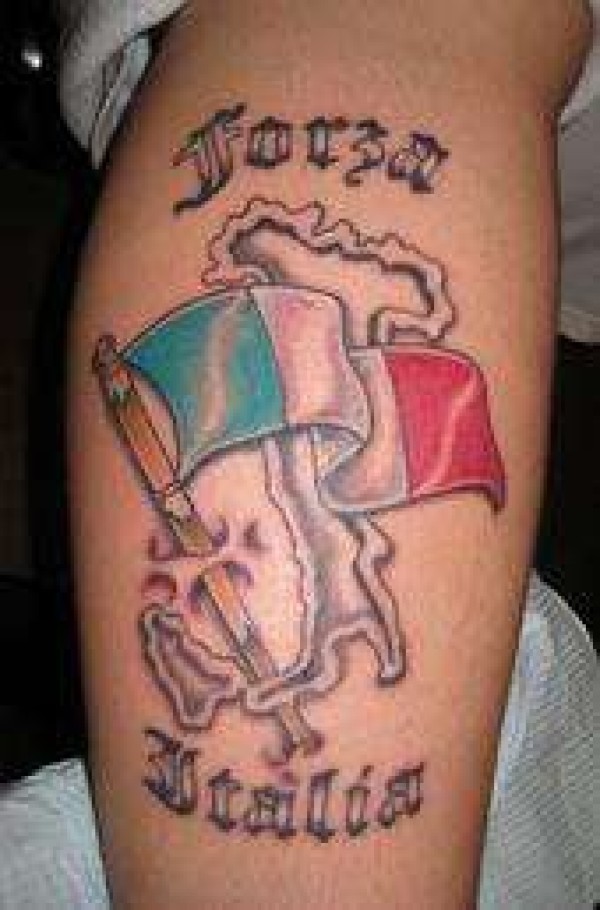 腿部彩色意大利国旗纹身图案