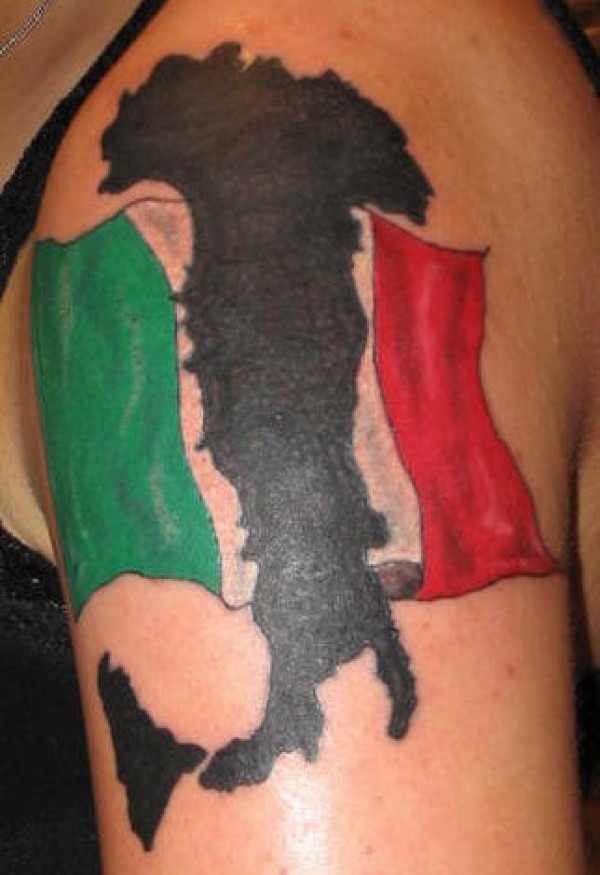 肩部彩色意大利国旗和地图纹身