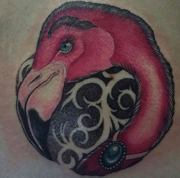 肩部彩色火烈鸟头纹身图案