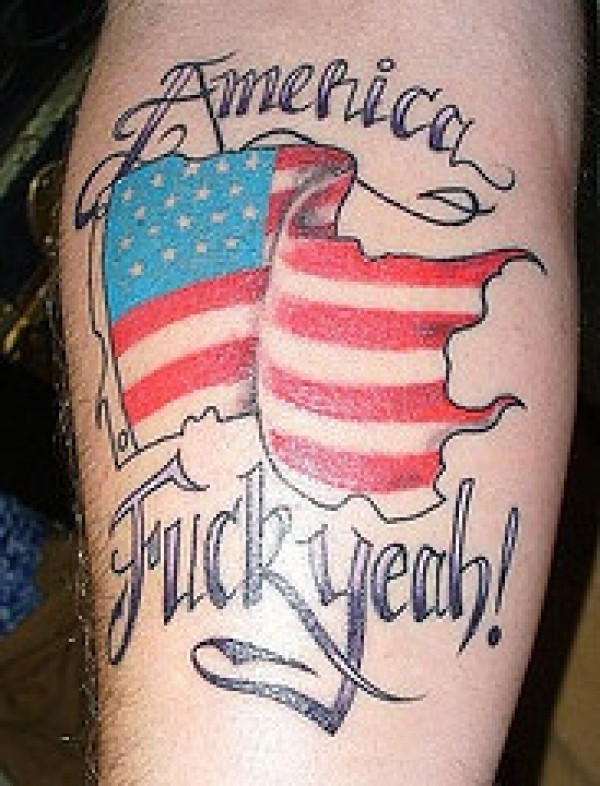 腿部彩色美国国旗与英文纹身图案