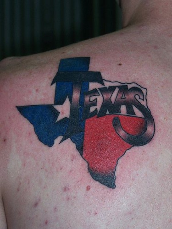 男性肩部彩色德克萨斯州国旗纹身
