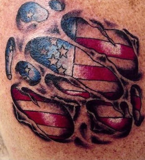 肩部彩色美国国旗撕皮纹身图案