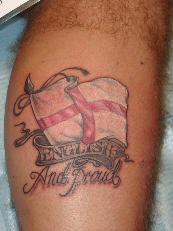 腿部彩色英格兰国旗纹身图案