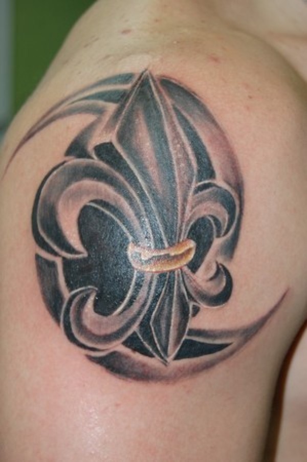 肩部逼真的鸢尾符号纹身图案