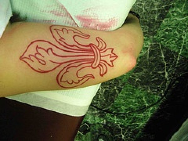 手臂鸢尾符号红墨水纹身图案