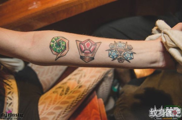 三种不同颜色宝石的镶嵌纹身图案