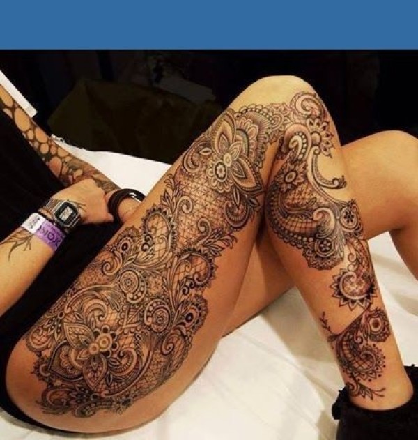 女性腿部惊人设计的花卉纹图腾装饰纹身