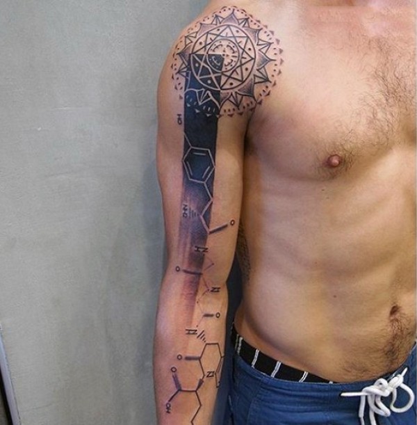 手臂以花卉为主题的科学图腾纹身图片