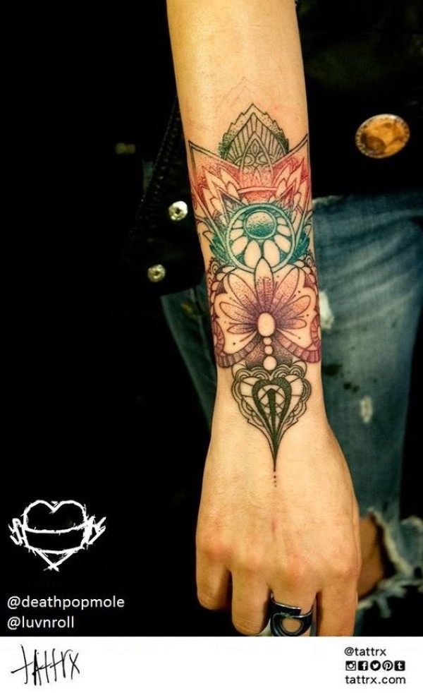 手腕彩色好看的印花图腾纹身图案