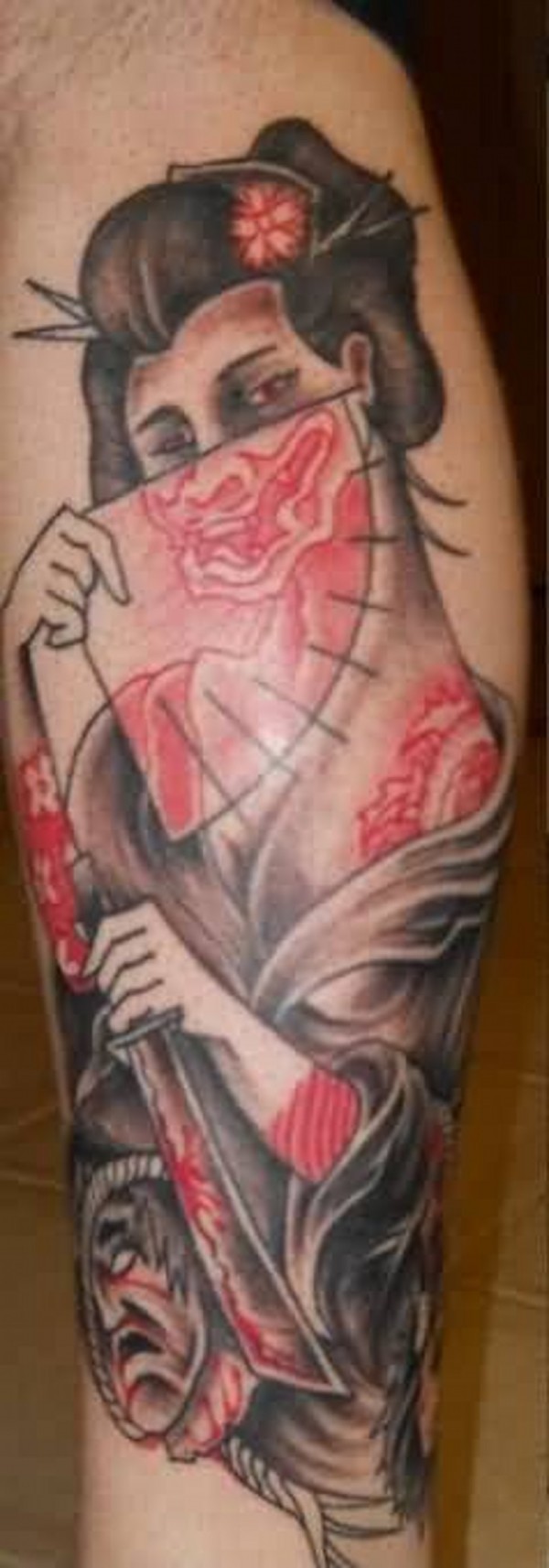 小腿艺妓纹身图案