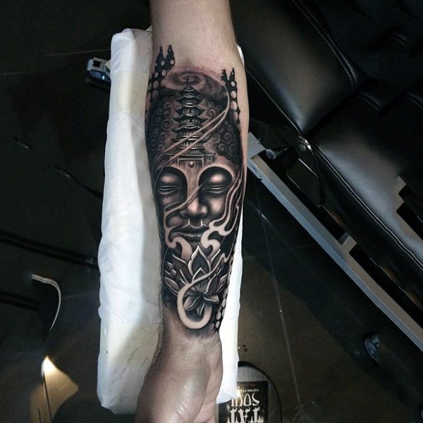手臂神秘的彩色如来佛祖雕像纹身