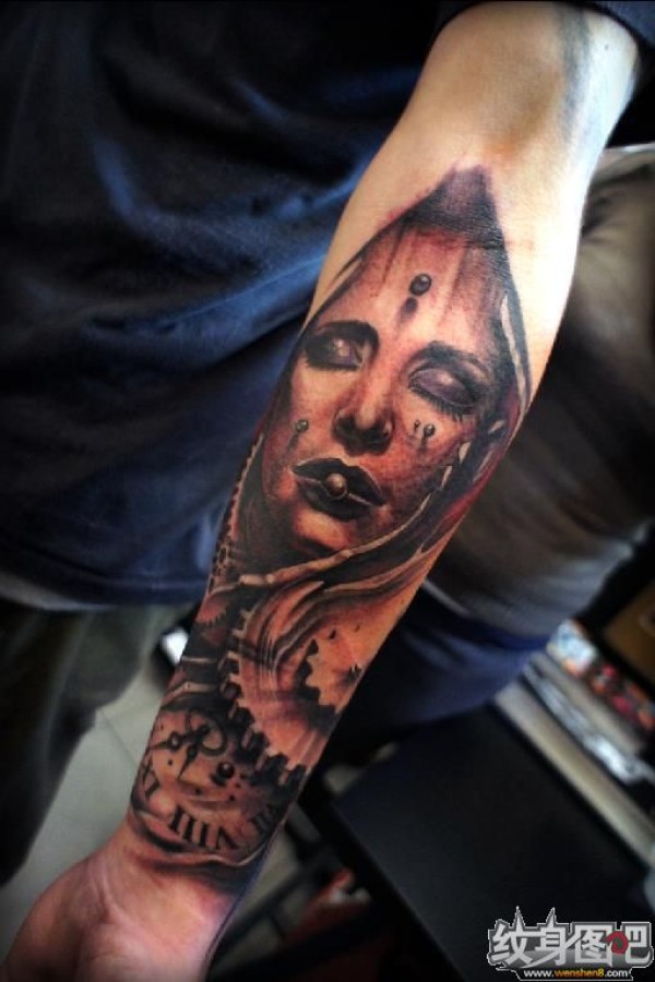 女性肩部肖像刺青_肖像纹身图案大全_纹身图吧