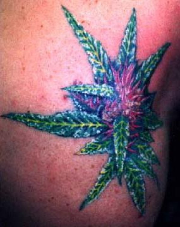 男性手臂彩色叶子纹身图案