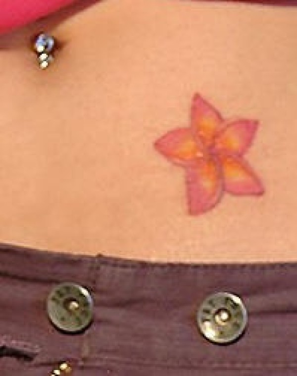 腹部彩色小清新花朵纹身图案