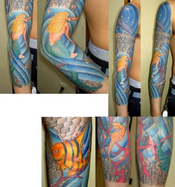 欧美花臂纹身_22张霸气黑灰欧美大黑花臂纹身图案作品图片