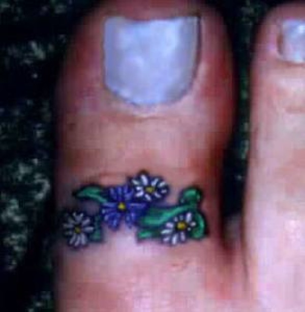 女性大脚趾上的彩色小束花纹身图片