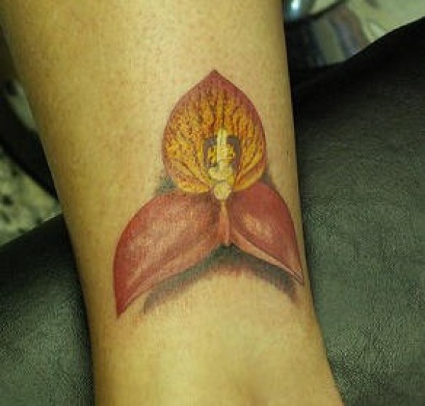 手腕彩色逼真的兰花纹身图案