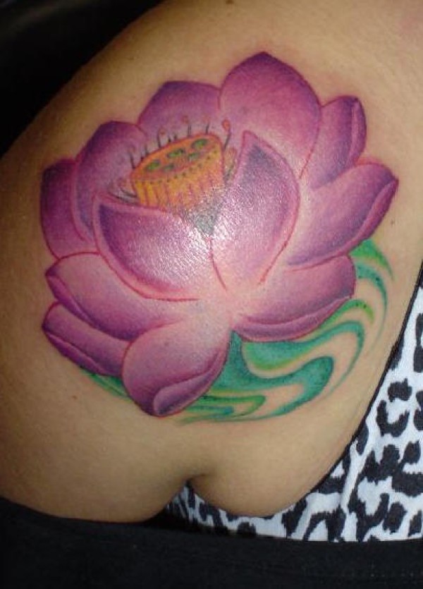 肩部彩色浅水莲花纹身图案
