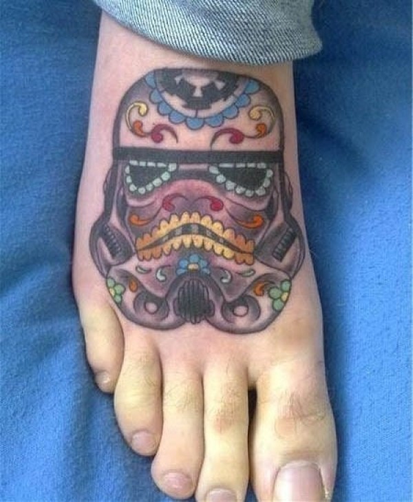 脚背彩色墨西哥达斯·维德的头盔纹身图案