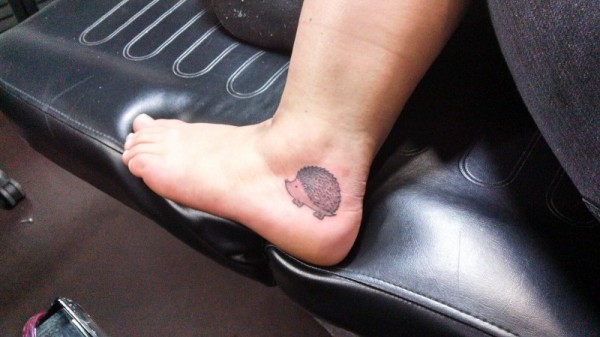 女性脚部可爱的小刺猬纹身图案