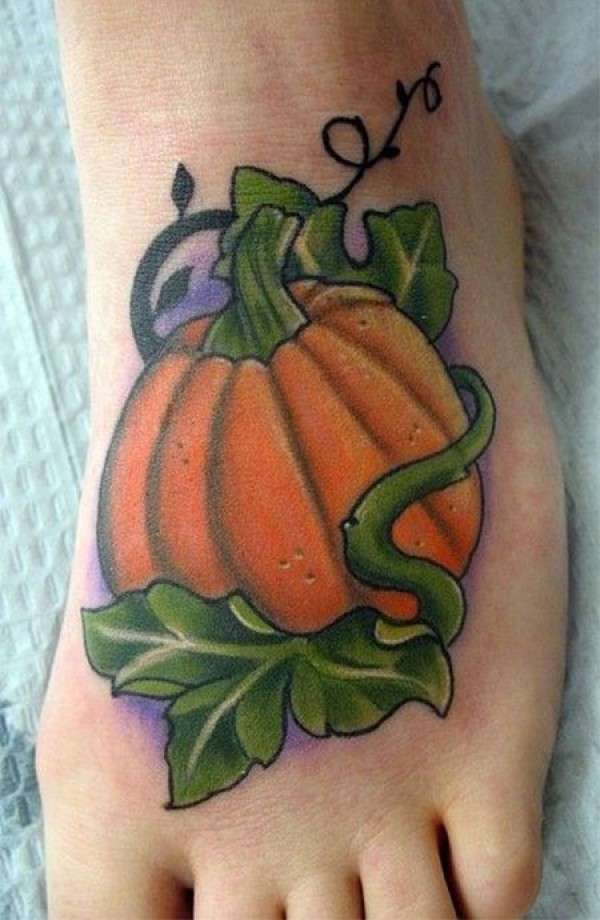脚背自然彩色南瓜纹身图案