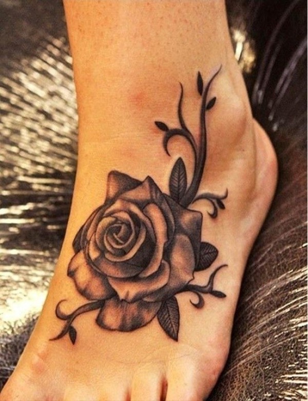 脚背上的灰色玫瑰花纹身图案