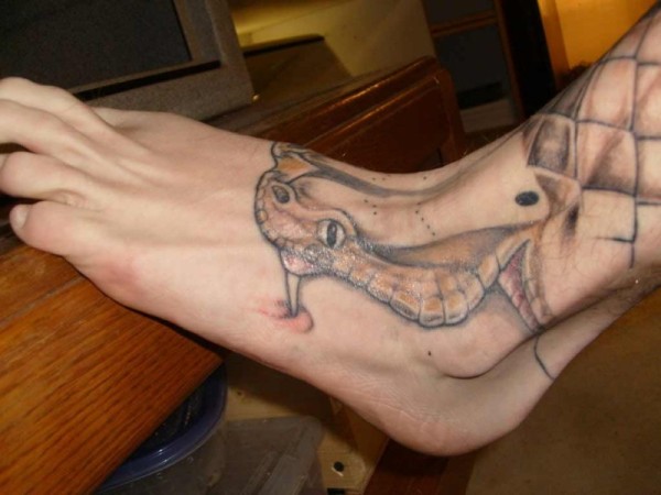 男性脚背彩色蛇头纹身图案